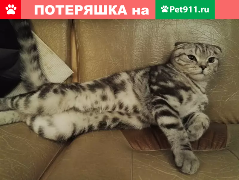 Порода -шотландская вислоухая, цвет - черный мрамор на серебре. Коту 1 год, кастрирован. Дома зовём Шеня. Очень доверчивый и любопытный, может подойти и к собаке, агрессии ни к кому нет.
