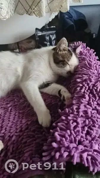 Белый с чёрными пятнами. Очень добрый, пропал 5 февраля, пожалуйста помогите найти котю