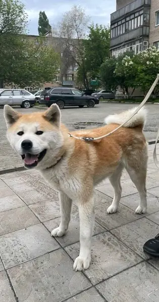 Собака мальчик, породы акита-ину. Ходил с поводком по с. Нежинка. Добрый, Умный, спокойный.