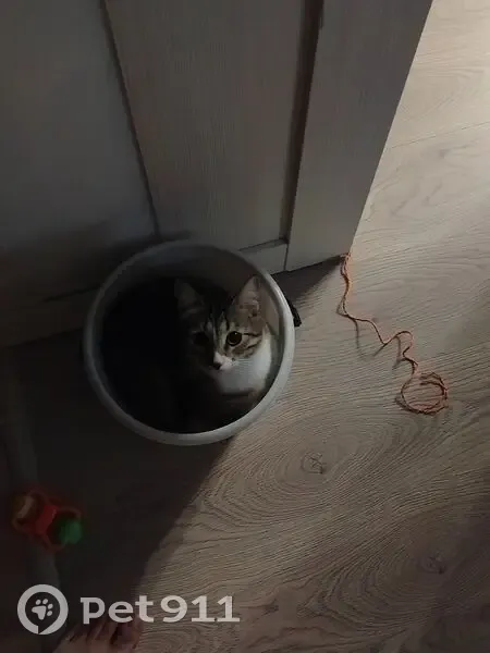 Серая, полосатая, белая грудка и носочки. Добрая, тянется к людям. Ушла в ночь на 27 апреля в селе Остров. МО.