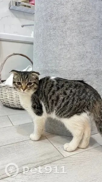 Котенок, возраст около 3х месяцев. Вислоухая, большие карие глаза. Пришла на территорию частного дома вечером 14 марта. Кошка очень ласковая, видно, что была домашняя