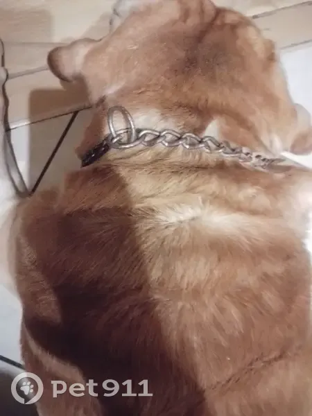 Порода: лабрадор. Цвет: палевый. Возраст: 8 лет. Зовут Томас (Том). На шее ошейник-цепочка. На правой щеке возможны следы от зеленки. Выскочил со двора.