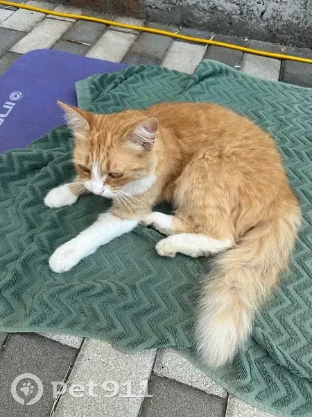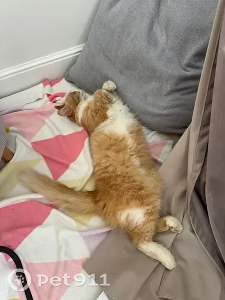Ушла гулять вечером 2 февраля и не вернулась. Кошка рыжая, пушистая, с белыми лапками, на животе белое пятно, похожее на песочные часы, глаза зелёные, носик розовый. Умная и ласковая.