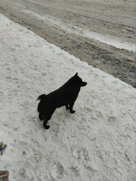 Черный, голубой ошейник. На ошейнике бляшка с номером телефона. Пуширный черный пес откликается на кличку Зард.