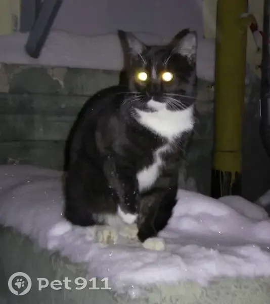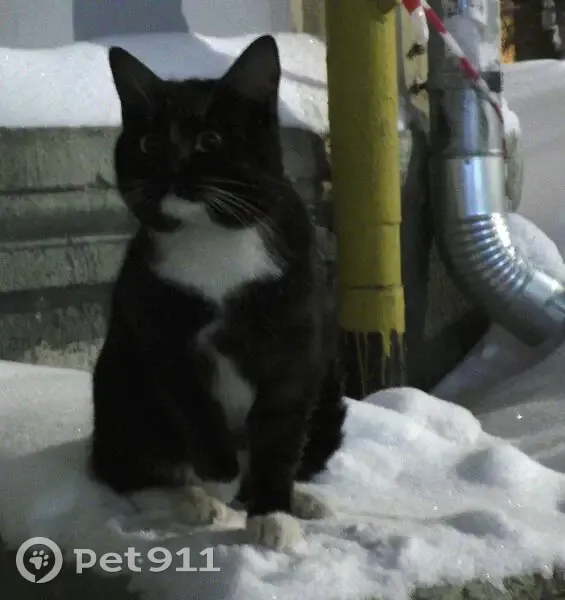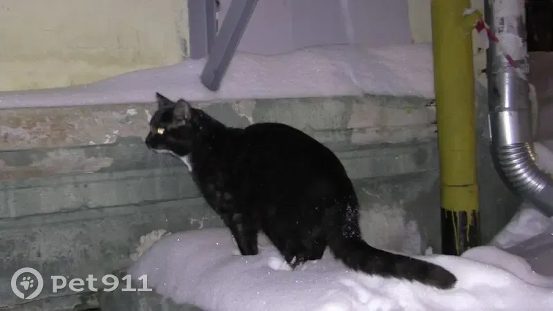 Кот черный с белыми лапками и ряд белых волосков на лбу. Сидит в подвале дома уже третий день. Плачет громко и дрожит, страдает в морозе. Ухоженный, общительный, красивый молодой кот. Помогите найти старого или нового хозяина.