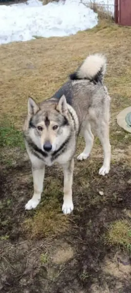 Западносибирская лайка, сучка, молодая, не отощавшая, ласковая, от людей не шарахается, без ошейника