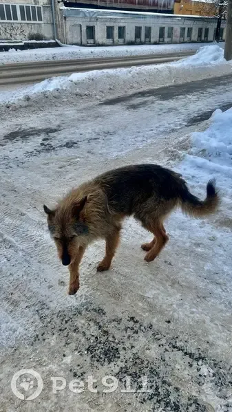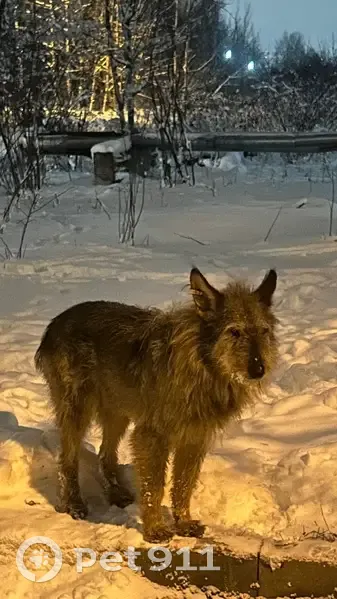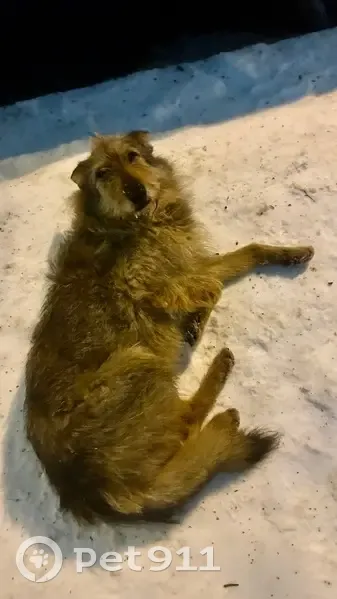 Собаке 8 лет. Живёт в подъезде дома, на ухе есть желтая бирка с цифрами.