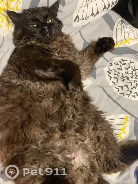 мейнкун черный солид, животик коричневый, был бритый под льва, но успел обрасти. Выбежал из машины у снт конденсатор 1