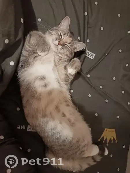 Серая дымка, белые полоски. Хвост полосатый, беленькие носочки (лапки) . Зелёные глаза при дневном свете, так карамельные. Не стерилизованная. Выскочила в подъезд, когда дочь выходила в магазин 01.01.2026, не заметила, что МИМИ вместе с ней проскочила. Обычно сидела в подъезде и никуда не уходила. Заметили пропажу значительно поздно, т. К. Кошка любила спать в шкафах и на подоконниках, т. Е. Не заметных на первый взгляд местах.
