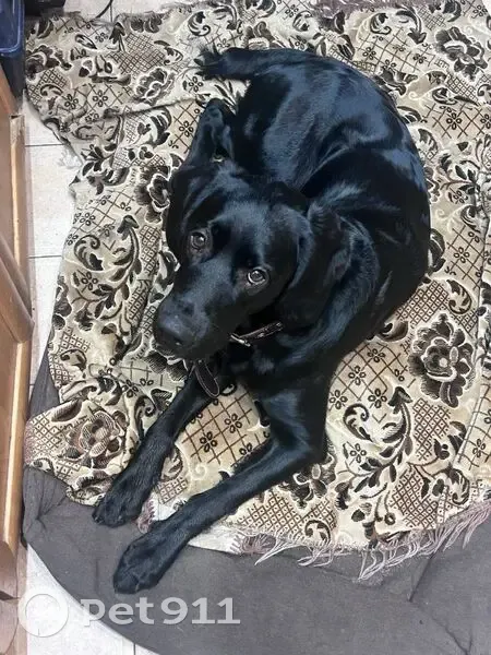 Чёрный окрас, хвост купированный, в красно- коричневом ошейнике. Испугался петард и побежал в сторону заборья на частный сектор. Уши висят, спаниель, но не чистокровный.