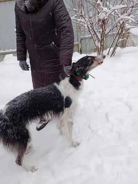 Пропала русская борзая, черно-белого окраса, испугалась звуков салюта вечером на прогулке и убежала. Собака с проблемными ногами, и пищеварением. Очень пуглива, для охоты и выставок негодная. На собаке была светло-коричневая кожаная шлейка и черный ошейник с адресником. Большая просьба сообщить о местонахождении по тел. 89013644956 или 89100752004.