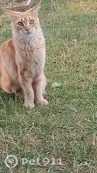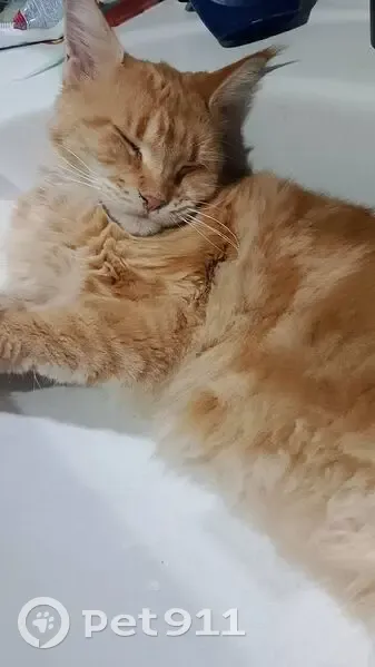Рыже-белый Мейн кун, больше среднего породного размера, Ушла и не вернулась. Кошка с характером, на других шипит, ласковая, красивая, сильная, стерилизованная