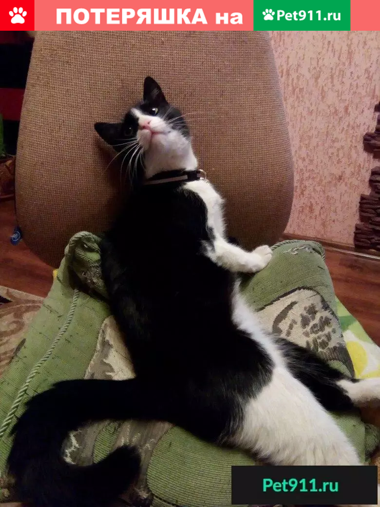Пропал кот в районе Гагарина, 10, черно-белого окраса. На шее светоотражающий ошейник с адресником. Зовут Барсик. М.т.. Очень ждём любимого животного домой...