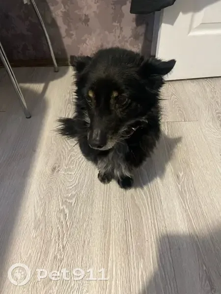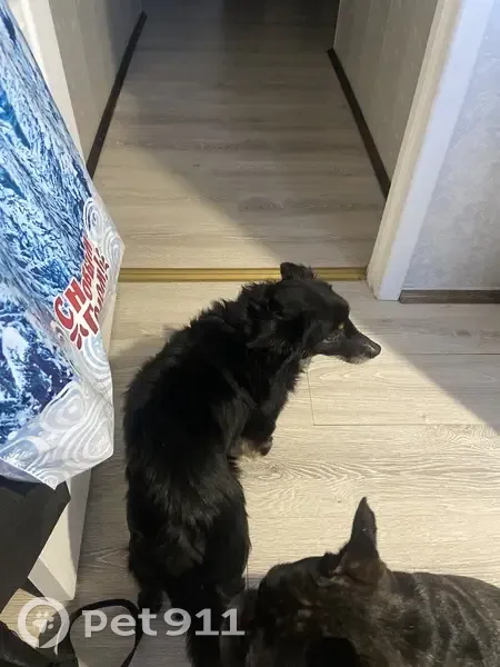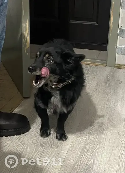 Черная с белым,с утра бегала на Победы 19,мальчик ошейник серебристый.