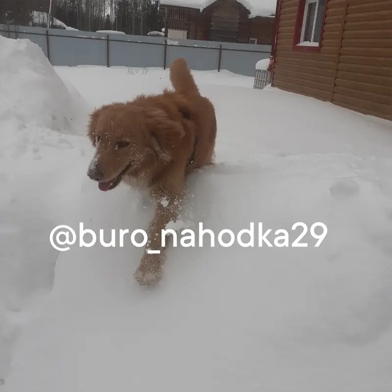 Нашли собаку, молодую, рыжая, с ошейником, ласковая, бегала у жд вокзала, Северодвинск, пошла с нами на работу, на завод сзсм