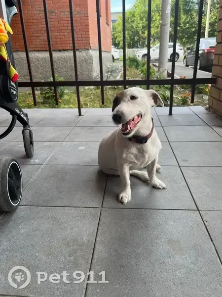Белая с коричневым пятном на голове слева в виде полумаски, одно ухо коричневое со стороны маски. На шее розово серый ошейник с застежкой фастекс. Маленькая, дружелюбная, может быть напугана. Иногда прихрамывает на задние лапы (подгибает одну из лап во время ходьбы) Ушла от дома на Южной 159 в городе Северодвинске.