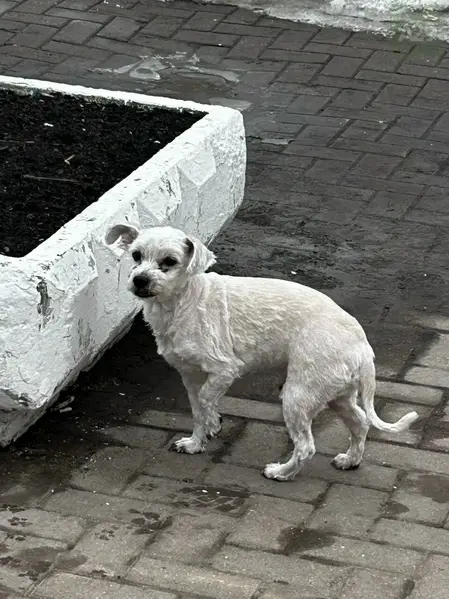 Пропала белая дворняжка в Северодвинске, вознаграждение за находку.