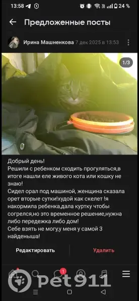 Если животное выглядит ухоженным, обратитесь к местным ветеринарным клиникам или приютам, чтобы узнать, не поступали ли туда сообщения о пропаже. Часто владельцы обращаются за помощью в поимке своих животных и оставляют свои контакты в таких местах.