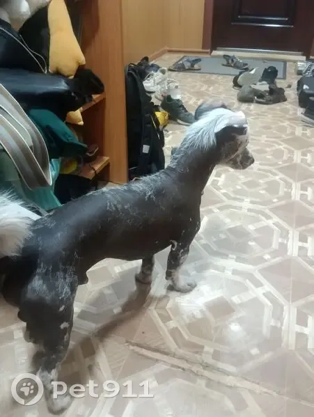 Жизнерадостный кобель, очень похож на китайскую хохлатую, но без длинной шерсти на ушах, в активном поиске дамы сердца, поэтому, видимо, и потерялся. Очень ласковый. Грустит без хозяев.