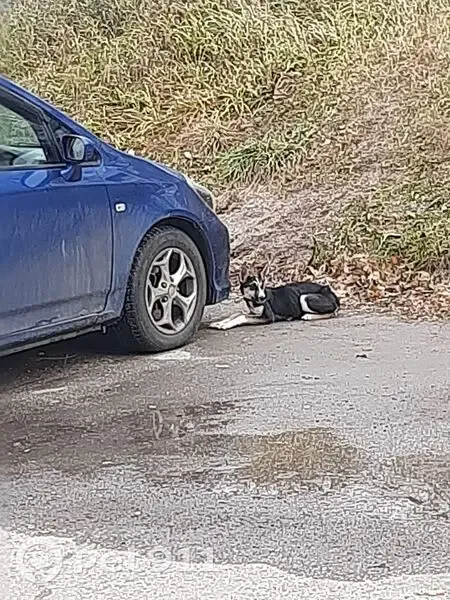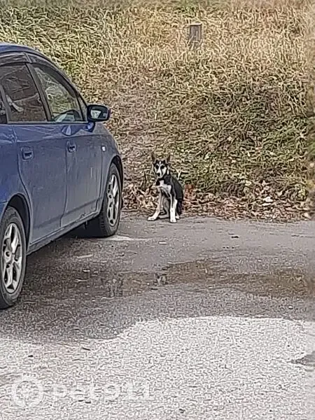 Обнаружена собачка возле дома 131 по ул. Калинина. На шее ошейник чёрного цвета противоблошинный. Очень худая, похоже, что потерялась давно. Я её покормила, но взять себе не могу, в доме есть животные.