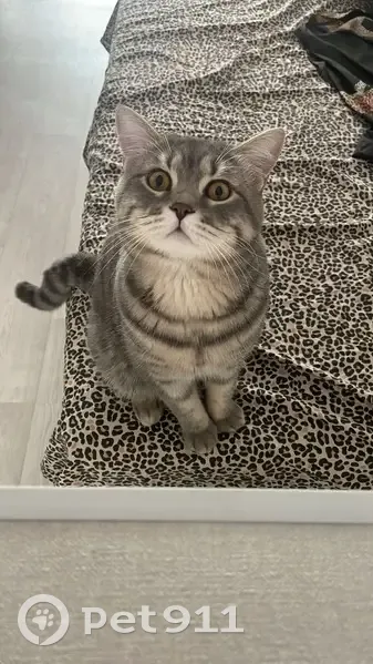 Котика зовут Сёма. Окрас серый в полоску. Упа...