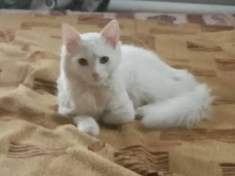 Найдена кошка белая по типу ангора район 15 шк. Обращатся но номеру настя