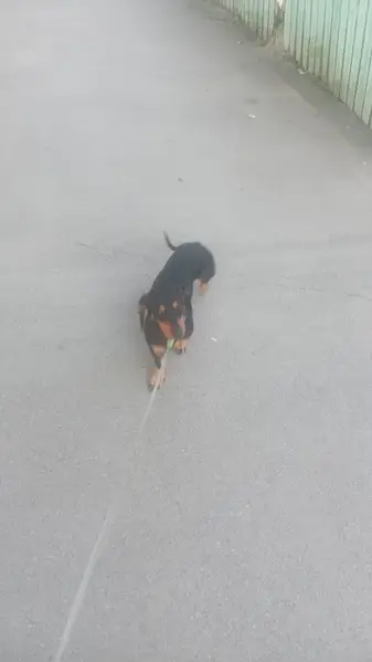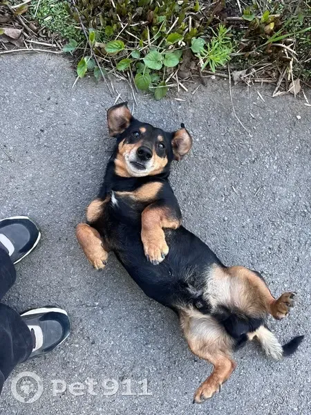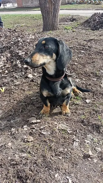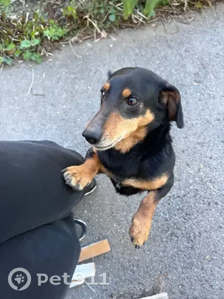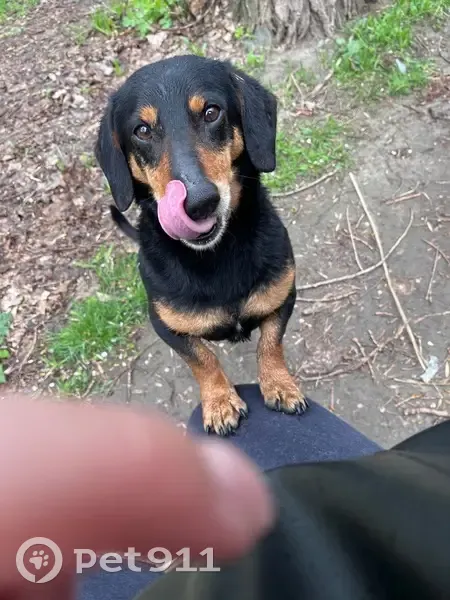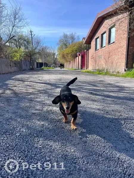 Похож на классическую таксу. Сильный и прыткий Молодой, может года 1,5 Очень энергичный и добрый. Улыбается) найден 12 апреля. Без ошейника. Возле дороги. Временно приютили в подвале дома. Не знаю куда его, даже шлейку одеть не смогла. Опыта нет с собаками