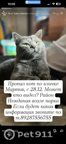 Серый с зелеными глазами. Мы не отчаиваемся, и ищем нашего котика, ушел гулять и не вернулся! Район Нежданая, улица Прокофьева, и соседние улицы возможно до парка, обошла все что можно, всех расспрашивая по пути, не кто не видел, надеюсь он в беду не попал, у нас собаки гуляют, кошек гоняют. Коту 3 года. Если кто видел или знает где он прошу сообщить по телефону:89287556755 Вознаграждение!!!