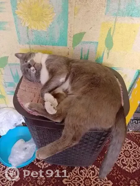 Потерялся кот. Окрас серый( мышиного цвета) грудка и передние лапы белые. На мордочке белое пятно. Ласковый, может не сразу отзываться на кличку. Мы приехали в гости он выпрыгнул из переноски и убежал