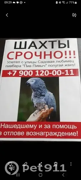 Потерянные животные Шахты, фото: Пропал попугай, Садовая ул., 26, Шахты