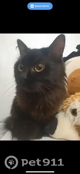 Окрас полностью чёрная, очень пушистая, очень ручная без ошейника