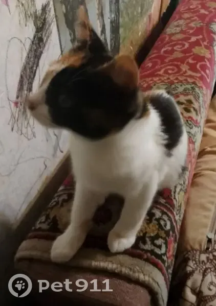 Выпала из окошка квартиры, возраст около 7 месяцев, вес чуть больше 2 кг. Пузико беленькое, на спине темные пятнышки и рыжие, мордочка половинка рыжая, половина темная. Хвостик сломаный, на нем шишечка. Худенья кошечка такая.