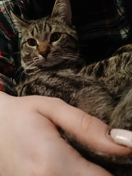 Найдена кошечка, г. Щелково около ул. Комарова 17/2, до года, беспородная, серо-коричневый окрас, ориентирована на человека, очень ласковая.
