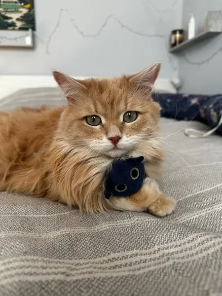 Рыжая кошка с длинной шерстью, немного есть схожесть с сибирской, есть приличный подшерсток. Возраст (со слова вет врача) - 1-2 года. Из особых примет: коричные пигментные пятна на веках и в полости рта. Нашли не мы ее, а скорее она нас. В первый раз (где-то в конце марта) мы подумали точно чья-то кошка. Она забежала на участок и буквально прыгнула в руки. Были пару колтунов, глаза текли слегка, но в целом ничего серьезного. Покормили, написали в чат соседям, ответа не получили, и решили выпустить, мало ли кто погулять выпустил. Однако, как потом выяснили, она приходила к нескольким соседям, но в итоге ее так никто и не взял. После холодных заморозков 11 апреля (второй раз) она сидела около наших дверей утром, мяукая и скребясь лапами. Как только открыли дверь, влетела в дом сама. Состояние было уже совершенно другим. Чихающее создание с красным носом, колтунами и вся в клещах. Клещей сняли, отвезли в ветклинику, там ее обработали от паразитов, убрали колтуны, назначили антибиотики против респираторной инфекции. При этом обнаружили беременность. До родов 2-3 недели. Знает, что такое патчи и лоток. Явно потеряшка.