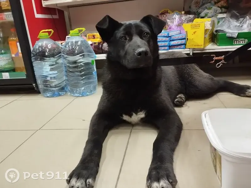 Потерся кабель , метис . Черный с белым пятном на груди. Молоденький но крупный. Добрый и ласковый. Сбежал из дома, ошейник снял возможно уехал на электричке. Умеет кататься на автобусе. Очень доброжелательный ко всем.