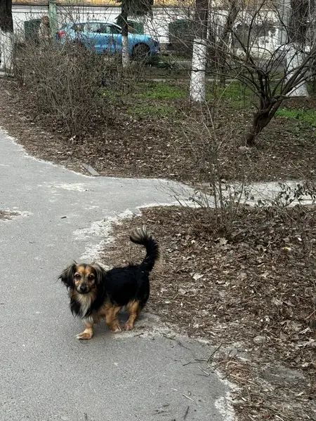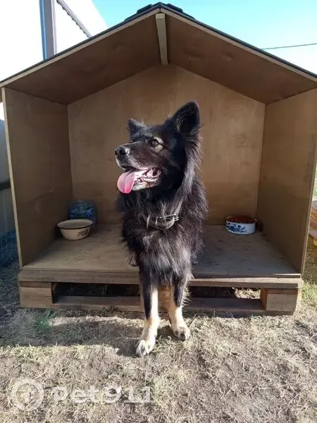 Дворняга, размер чуть меньше овчарки, длинношёрстный, был в двух ошейниках один кожаный широкий, другой от клещей зелёный... Добродушный и к людям и к животным...