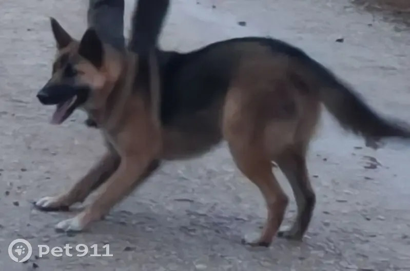 Крупная девочка, окрас коричневый с черным, белая грудка, на лапах белые носочки. Коричневый ошейник, возможно часть цепи, которую порвала. Собака немного пугливая, очень ласковая.