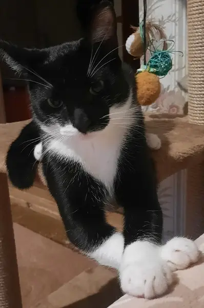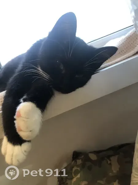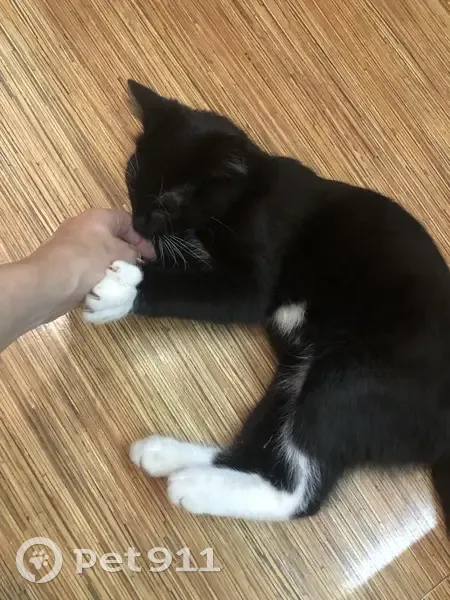 Котик , возраст около 6 месяцев. Игривый, черно-белый, Лапки массивные, большие подушечки. Белые бровки и Усы. На передних лапках белые подушечки, задние белые до коленки