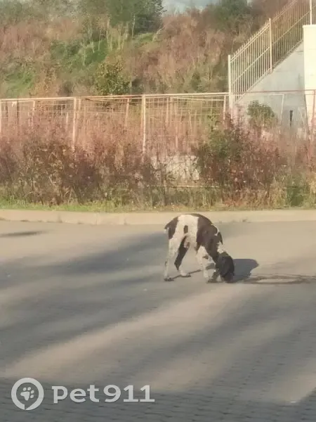 Гуляет возле метро, обнюхивает людей. Гавкает и бегает на проезжающие машины, может быть так и потерялась. Есть ошейник, по виду не тощая, охотничья. В первый раз вижу возле метро, хотя езжу часто.