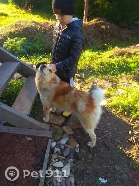 Рыже белый пёс. Скрещен с лайкой, поэтому внешнее сходство с лайкой есть, хвост такой же закрученный, но мордочка .Олег вытянутая. Одно ухо, правое, не много висит (не стоит). Хромает не много на правую переднюю лапу, так как повредил подушку. Свою кличку хорошо знает, откликается на имя Рэкс. К людям не много осторожен, боится. Не агрессивен. Местность (Сибай) не знает, так как привезен с другого места. Убежал с частного сектора, вылез из ошейника. Ранее тоже так делал, но всегда прибегал обратно. Очень нужна помощь в поиске. Буду благодарна любую информацию