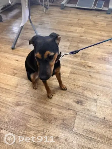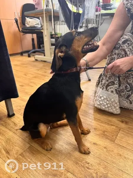Найдена собака, на вид молодая. Девочка в красном ошейнике. Бегала в районе улицы Лермонтова и кидалась под машины. Собаку забрала на работу девушка. После 18.00 девать некуда.
