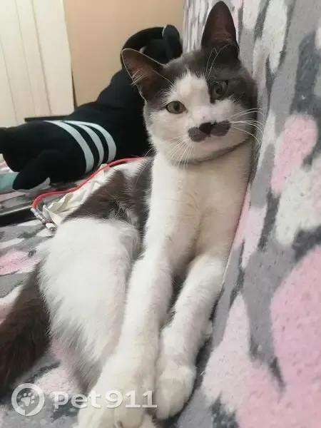 Серо-белый на мордочке серые усы, некрупный, хромает на одну лапу (должна быть перебинтована). Отзывается на кличку Кит. После посещения ветклиники привезли домой, он ещё находился под воздействием седатика. Сбежал через окно с перебинтовоной ногой.
