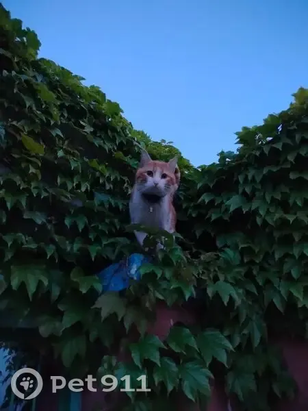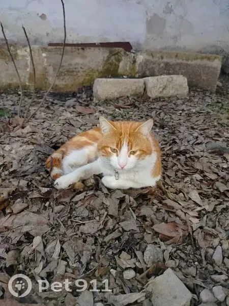 рыже-белый, жёлтые глаза Приметы: Самец, не стерелизован. Есть два ошейника — один от блох, второй синий со светоотражающей полоской и медальоном (внутри записка с именем, адресом и телефоном)