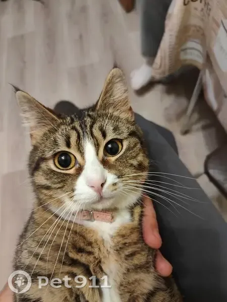 Кошечка серого цвета с белыми "носочками", никогда дальше двора не уходила,в день пропажи была в розовом ошейнике, с бабочкой и бубенчиком розового цвета