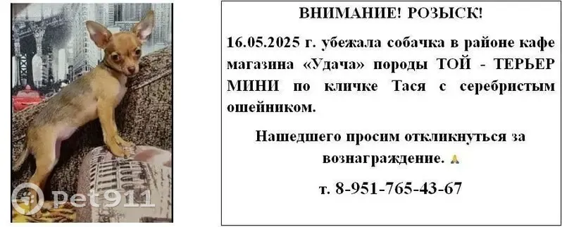 Объединено с объявлением rl1015293. Причина-дублирование информации. Описание дублирующего объявления: Собака мелкого росточка. С серебристым ошейником. Рыжая с темным окрасом. Породы Той-терьер.