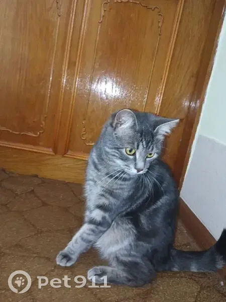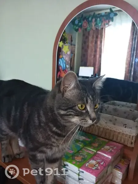 Найден котик! В районе ул. Проточной/ул. Западной, район в/ч Возраст - примерно 6-8 месяцев. Окрас – черно-серый, полосатый. Был с фиолетовым ошейником, на нём – бубенчик и жетон с летающей тарелкой. Оставили пока у себя. Тел. 8-918-665-07-19, Екатерина.