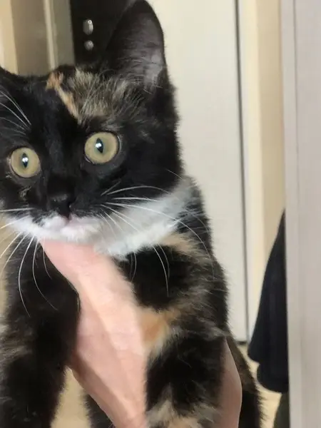 кошечка домашняя, пугливая, на фото вы можете увидеть под носиком пятнышко черное , сама она маленькая еще