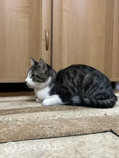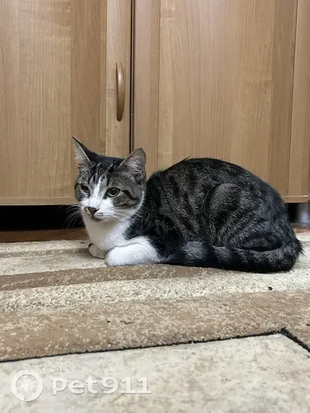 Трёхцветный, на вид ухоженный, когти подстрижены (? Возможно?)