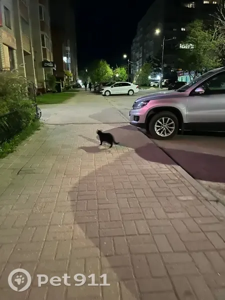Чья кошечка в районе улицы Матросова (особенно около Улыбки)? Черная молоденькая с желтыми глазками. Фото не супер, так как ночью и она убегала, но очень тактильная. Ищет своего хозяина или мечтает обрести его!