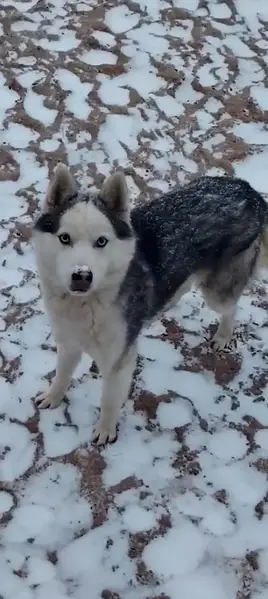 Хаски, с ярко-голубыми глазами, серая шерсть, сегодня целый день на улице, либо потерялась, либо выкинули,